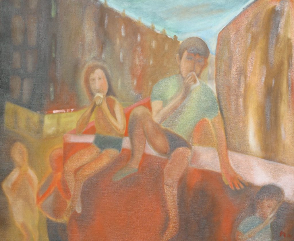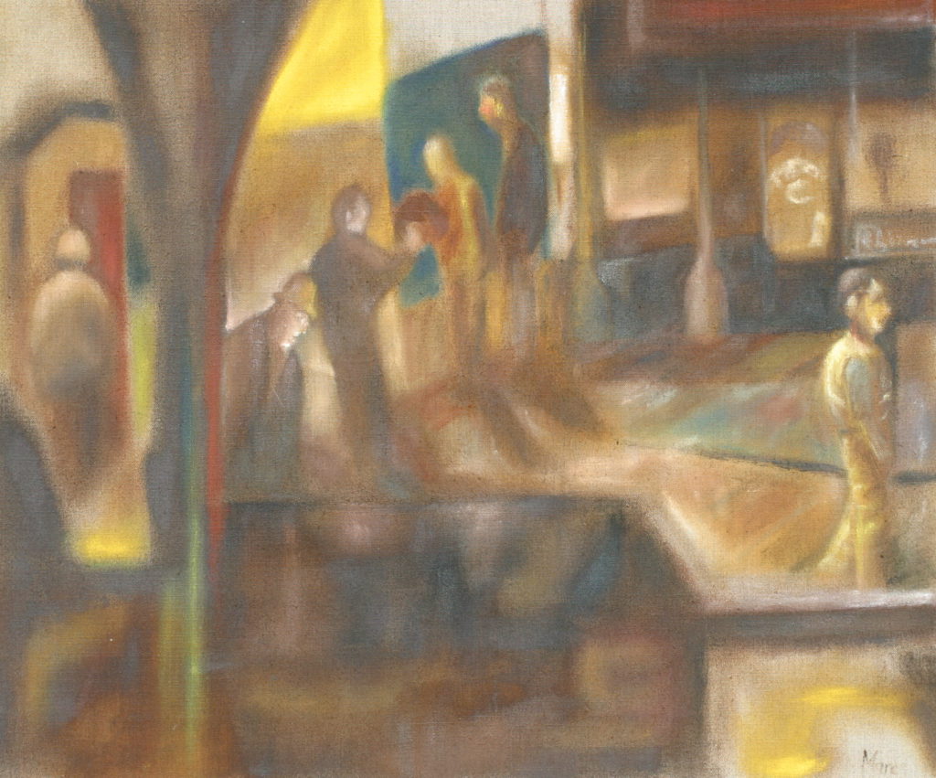 Mes tableaux sont remplis de personnages. J’aime peindre les gens.