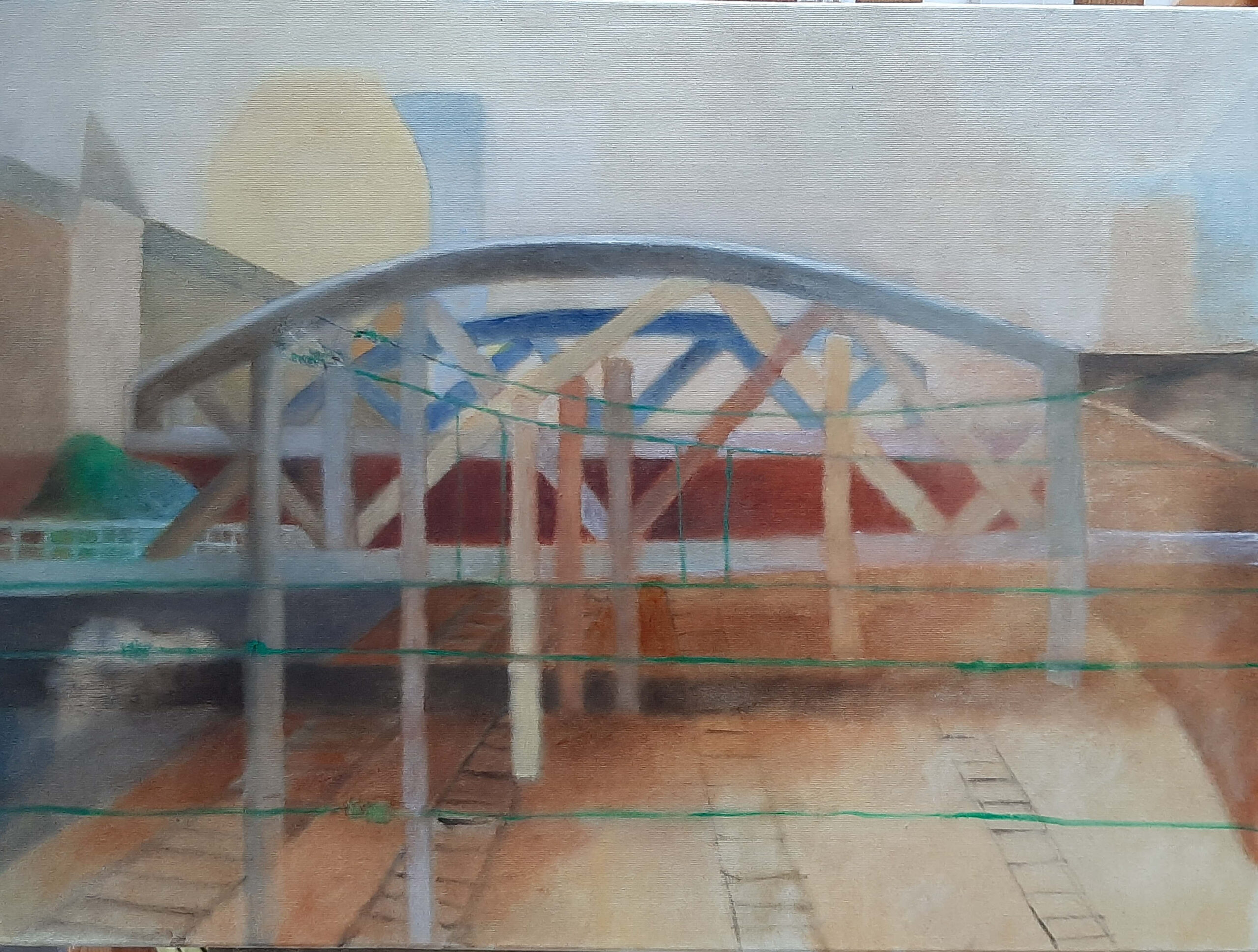 Pantin, c’est d’abord le canal. A partir des moulins qui bordent l’Ourcq (ancienne minoterie, Porte de Pantin, derrière le périph’). Il y a un certain temps, j’avais commis ces deux petits formats à l’huile.